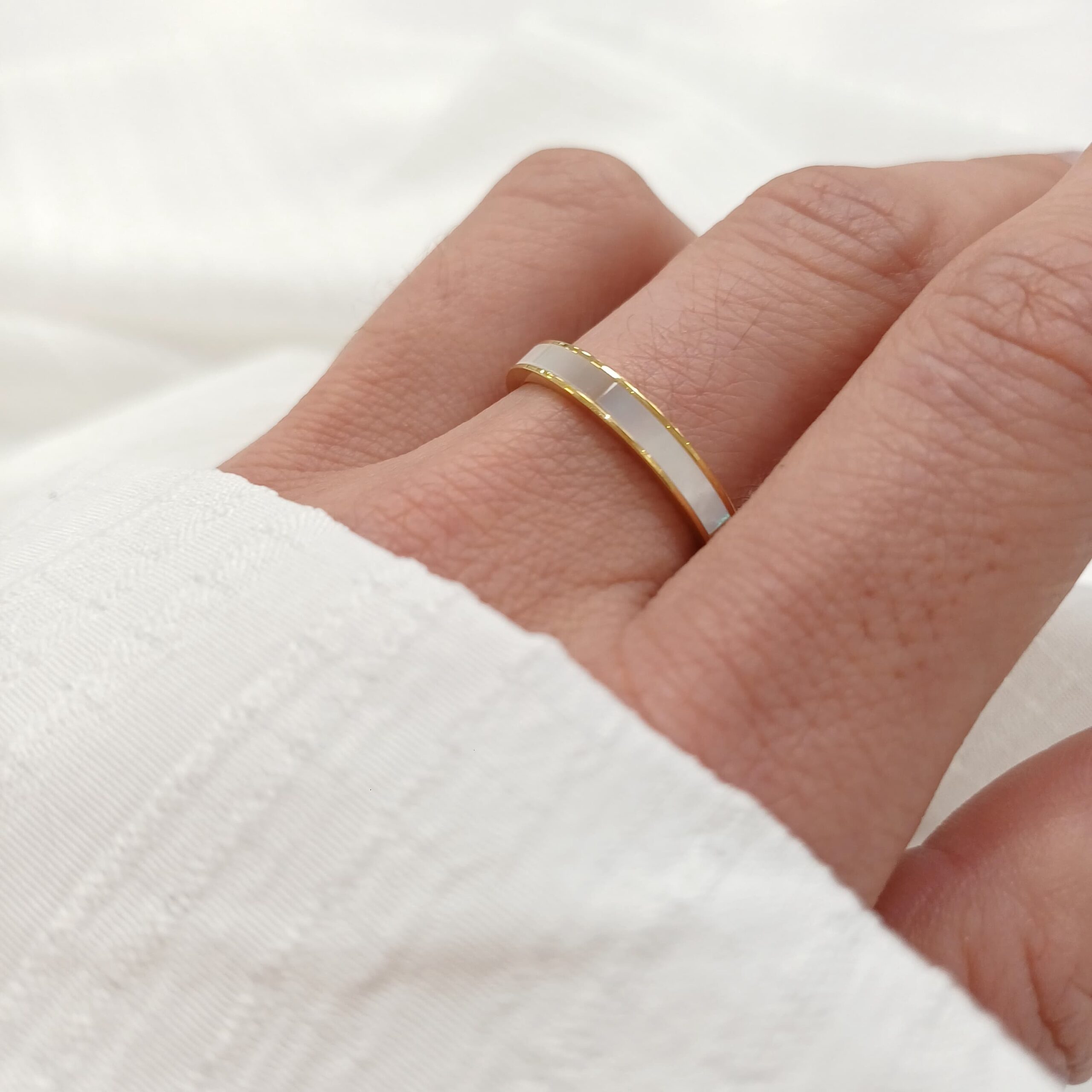 Anillo Acero Dorado -Nacar